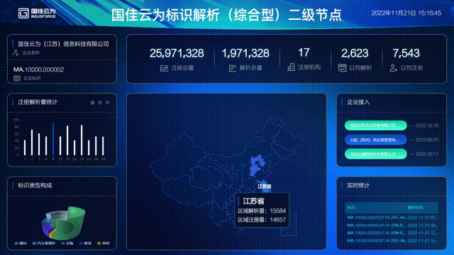 标识监测子系统是通过对解析运行情况,如有活动业务流状态超过预警值,自动向平台管理员发出异常报警信息。采用安全技术与监测分析手段保障标识解析节点的安全、稳定、高效运行,并对区域整体数据情况进行分析和展示。