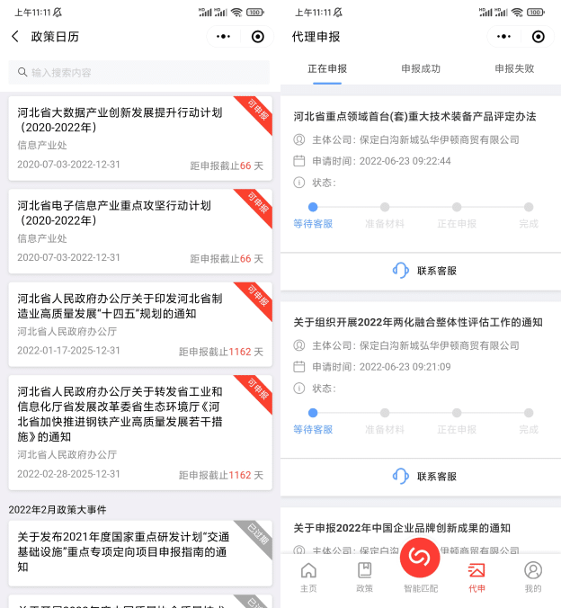 平台根据企业自身情况,向企业精准推送合适的政策信息